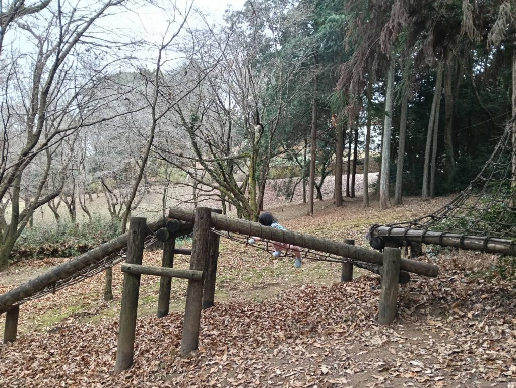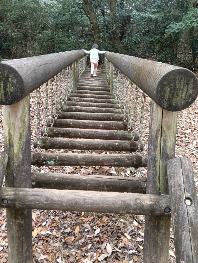 くだって来る途中、芝生広場で走ったり、丸太の吊り橋や網の橋を渡ったりして、アスレチック遊具で楽しみ、美味しいものを食べ過ぎた体をリフレッシュ(^O^)!
