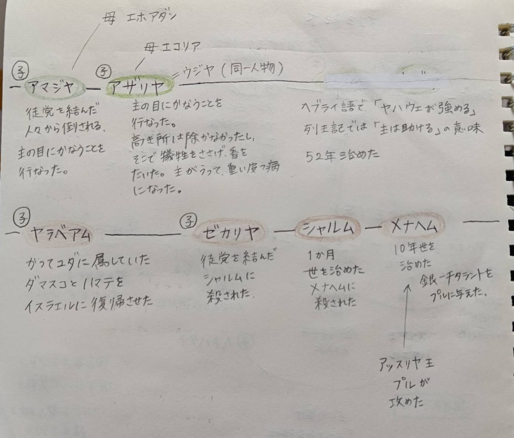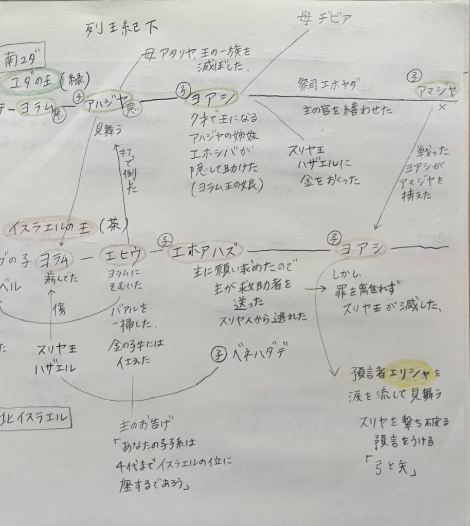 列王紀下を読んでいたらなかなか進まない。面白くて、ノートに歴史をかいて、理解を深めています。そんな時、今週の主日の御言葉でこのようにおっしゃいました。